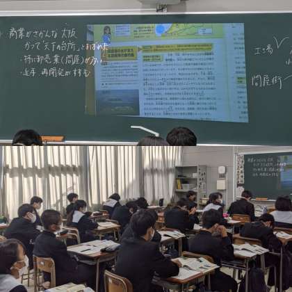 【社会】京阪神のことを学んでいます。大阪の産業について話をしていました。(2組)