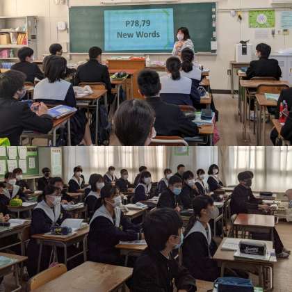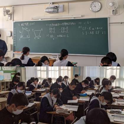 【英語】入試に関する説明をしています。これから始まる受験に向けての大事なお話でした。みんな真剣に聴いています。(3組)