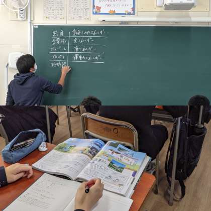 【理科】それぞれの器具がどんなエネルギーに変換されるのかの確認をしています。(1組)