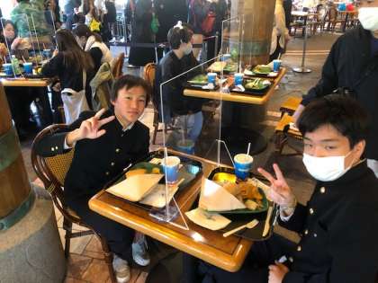 昼食はスチューデントミールクーポンを使用していただきました。午後からの活動に備えて腹ごしらえ!ここまでみんな無事に、楽しく活動しています。