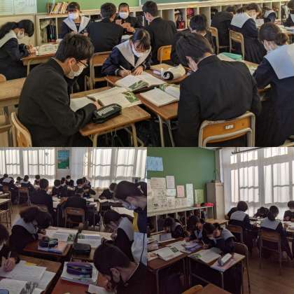 【理科】テストが返却されて解説を聞いています。(3組)