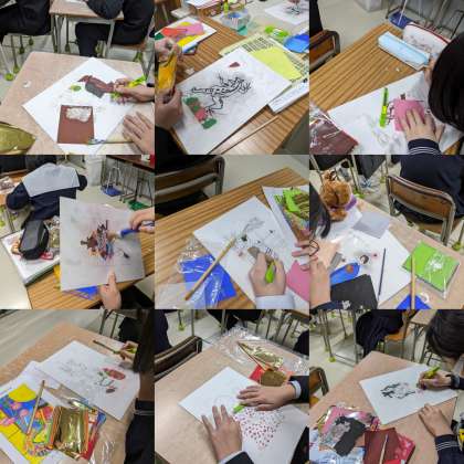 【美術】プッシュ画にかなり色が入ってきています。(2組)