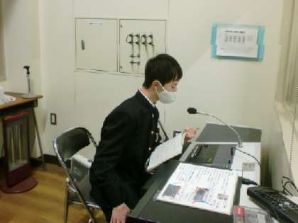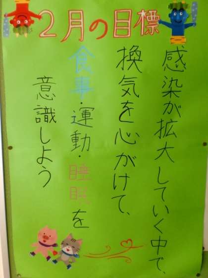 学校の様子(放送集会)本日放送集会でした。校長講話では、2月14日の誕生花「カモミール」の花言葉「逆境に耐える」のお話の後に、現在のオミクロン株の大阪の厳しい状況に耐え、感染症対策を続け今週も元気に過ごそうとのお話でした。「カモミール」は、ハーブティなどで胃腸に良い植物のお医者さんともいわれているそうです。