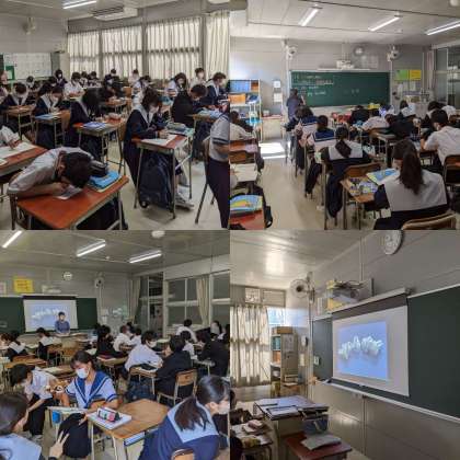 【社会】阪神工業地帯の特色について学んでいます。東大阪市には世界トップレベルの技術があります。(3組)