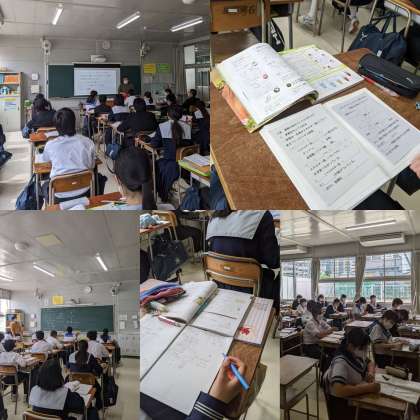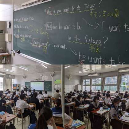 【英語】本文を読んで内容の確認をします。新しい単語の発音や意味を学んでいます。(2組)