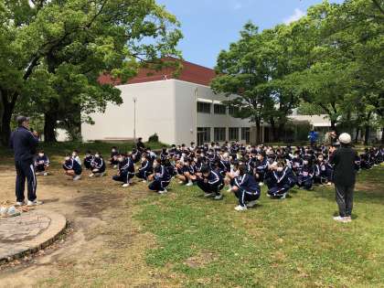 昨日の夜の雨が信じられないほどの良い天気です。広場の状態も全く濡れてなく素晴らしいコンディションで大繩大会が行われています。