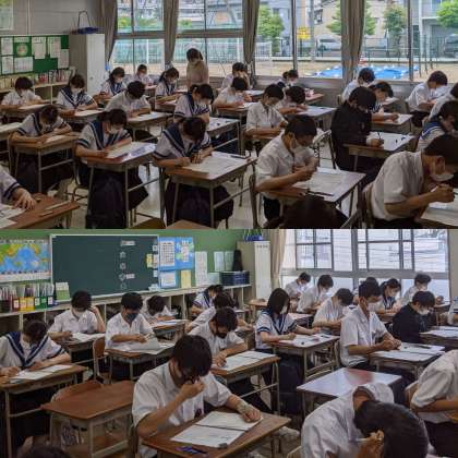 本日2、3年生は中間テスト2日目です。教科は社会、数学で2年生のみ技術家庭のテストがあります。できなかった個所をしっかり確認して復習しましょう。自主学習ノートを活用して勉強しても良いですね。