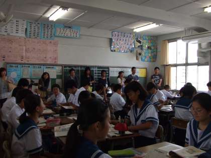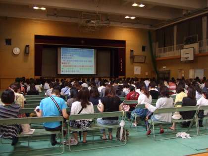 6月20日(土)、1・2限は参観、11時15分より進路説明会をしました。多くの方がお越しいただきました。写真のように自転車がいっぱい、教室にも多くの保護者が参観していただきました。そして、その後、進路説明会を体育館で持ちました。目標に準拠した評価、28年度入試の内容等盛りだくさんでしたが、最後まで、ご清聴ありがとうございました。時間が押してしまいましたので、ご質問等をお受けする時間が無くなりましたが、何かありましたら、資料の最終ページにある「ご質問カード」を利用して、お子様通じてお届けいただくようお願いいたします。