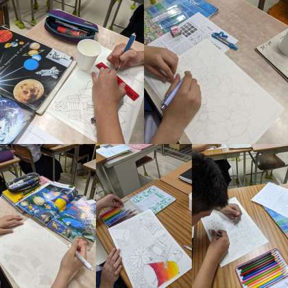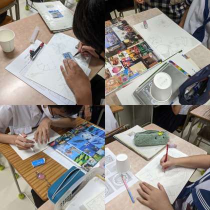 【美術】コップと文様と紋を組み合わせてデザインを考えます。(1組)