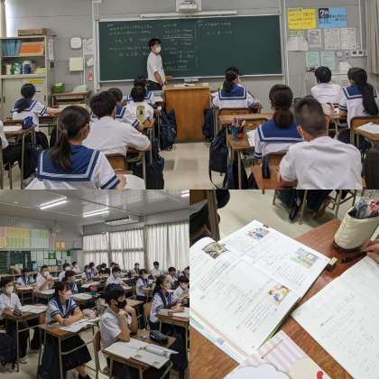 【音楽】テストが返却され、解説を聞いています。(1組)