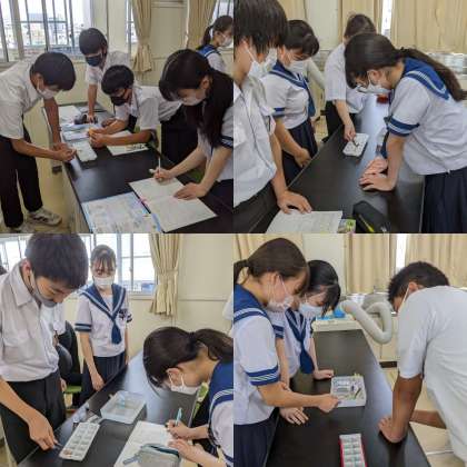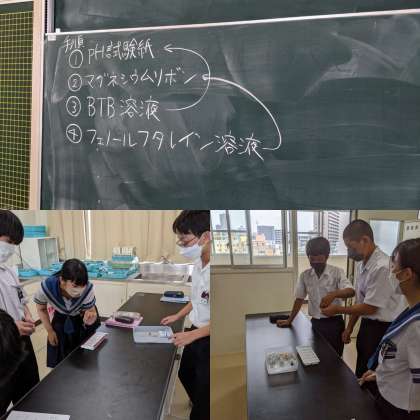 酸性とアルカリ性を調べます。色々な試験紙を使います。