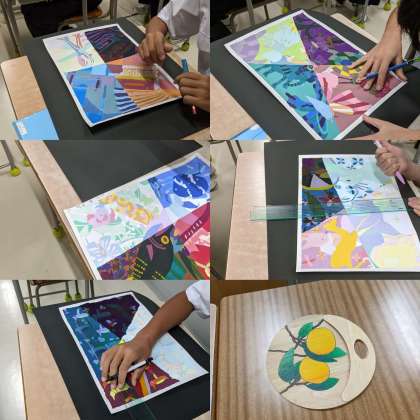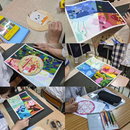 【美術】うちわづくりと六稜祭に展示するための台紙を作っています。(2組)
