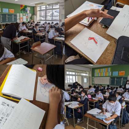 【国語】『変わり身の上話』のクイズを考えています。完成した生徒はワークなどテスト勉強をしています。(1組)