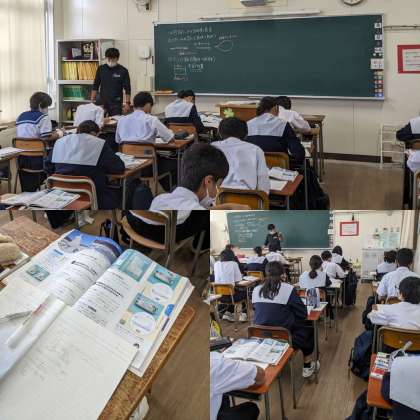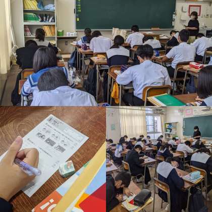 【英語】リスニングの小テストをしています。定期テストにもリスニングテストがあります。(3組)