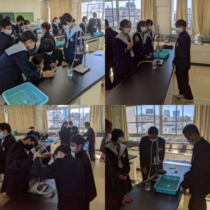 【理科】エタノールの沸点を調べる実験です。(3組)