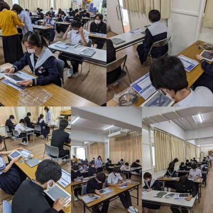 【英語】英語力調査GTECをおこなっています。ヘッドセットをつけてスピーキングテストをします。(1組)