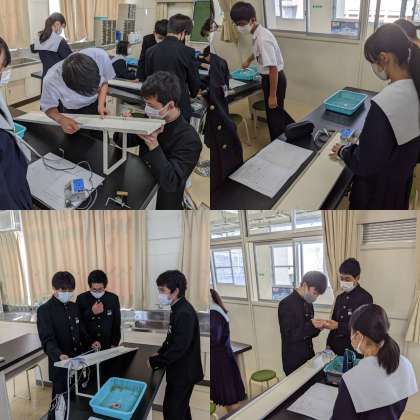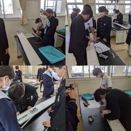 【理科】斜面を滑り降りる台車の運動の実験です。(3組)