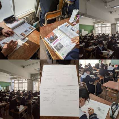 【社会】公民の範囲で、法律や予算についてのプリントをしています。(2組)