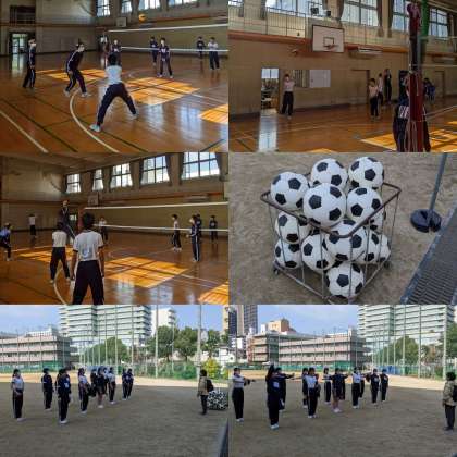 【体育】男子は体育館でバレーボール、女子は第二グランドでサッカーをしています。(1組)