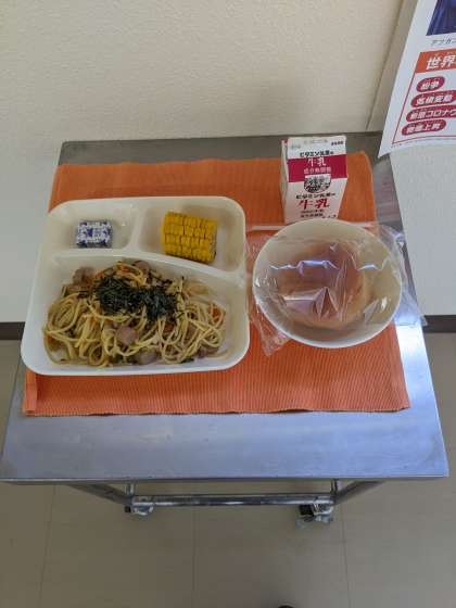 11月7日(月)の給食 公開日 2022/11/07 更新日 2022/11/07 お知らせ 【本日の給食】 ウインナーときのこの和風スパゲッティ 焼きとうもろこし 固形チーズ パン 牛乳 いいね(0)