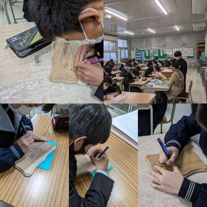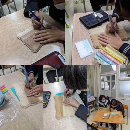 【美術】彫刻刀を使って彫っていきます。(2組)