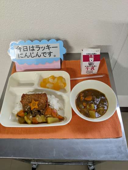 【本日の献立】 カツカレーライス フルーツゼリー 牛乳