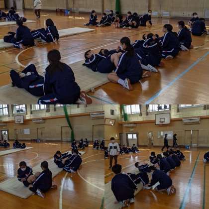 【体育】スポーツテストに向けて、上体おこしのトレーニングをしています。(1、2組)