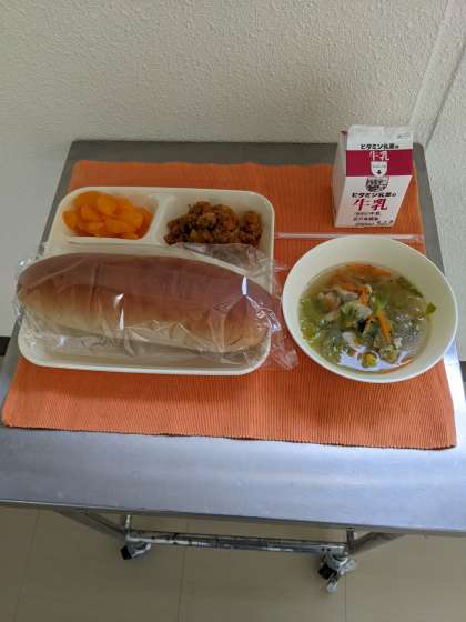 【本日の献立】 じゃがいものミートグラタン レタスのスープ みかん(缶) パン 牛乳