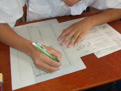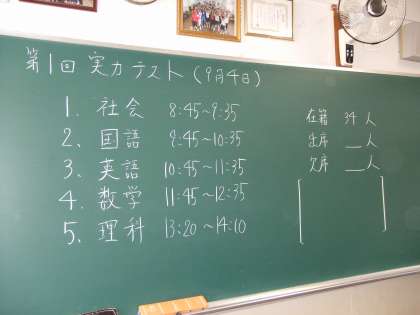 3年生の実力テスト第1回が始まりました。緊張した面持ちで、1限目の社会のテストに取り組んでいます。夏休みを中心に勉強を積み重ねてきた結果が出るといいのですが、どうでしょうか。