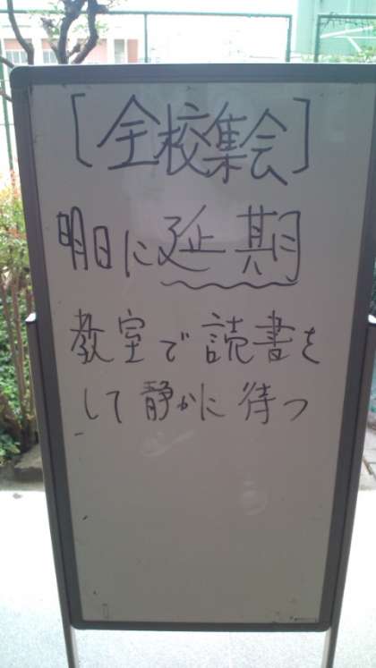 昨日から断続的に降った雨のため、今週の全校集会も延期になりました。