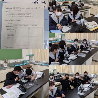 2時間目に理科室で実習をしています。細胞分裂の観察です。ねぎの根の先端を使います。