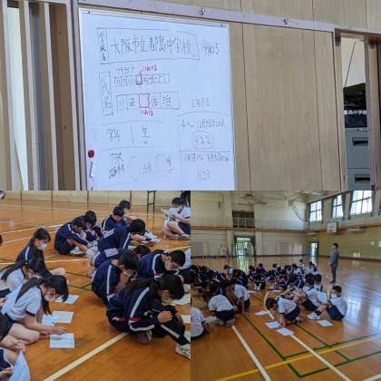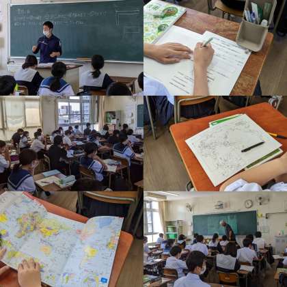 【社会】世界地図の小テストの説明をしています。小テストは再テストもあるのでしっかり学習してください。(2組)