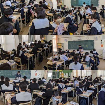 【美術】一点透視図法を使って部屋を描いていきます。(3組)