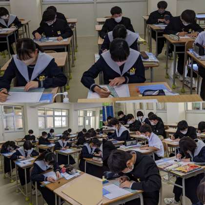 【英語】ペアになって新しい単語の確認をしています。(2組)