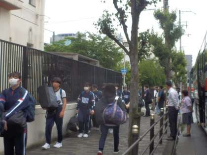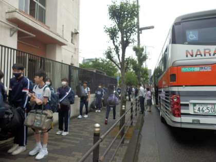 修学旅行:少し雨模様でしたが、元気に出発しました。