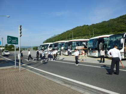 修学旅行(室津PA)16時15分 最後のトイレ休憩をしています。