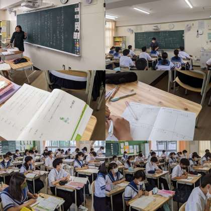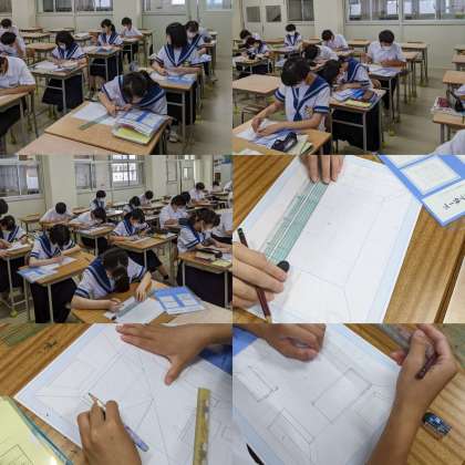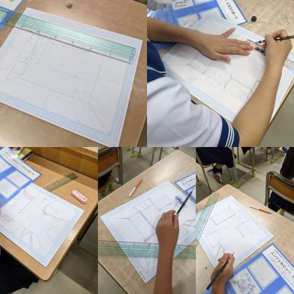 【美術】一点透視図法を使って部屋のデザインをしています。(3組)