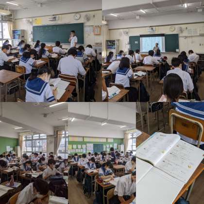 【国語】『俳句の世界』という題材です。教科書の内容を順番に読んでいきます。(1組)