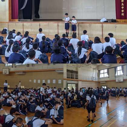 無事に学校に到着しました。解散式後生徒は下校しています。かなり疲れていると思いますので、家でゆっくりさせてあげてください。また、一泊移住での様子をきいてあげてください。