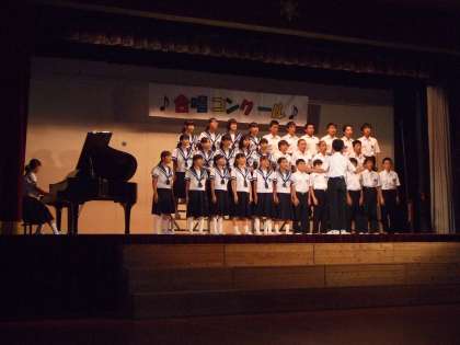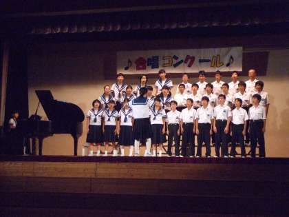 5・6限、体育館で合唱コンクールです。クラスによっては今日までに100回以上の練習を積み重ねてきて、仕上げてきたそうです。結果は4組が金賞(上の写真)、2組が銀賞(真ん中の写真)でしたが、どのクラスも金賞! といっていいほど素晴らしい歌声でした。歌だけでなく、私語ひとつない鑑賞態度、舞台への移動・降壇、どれをとってもみな金賞! でした。