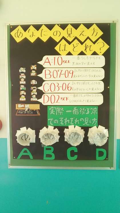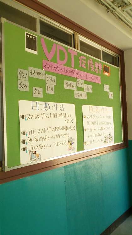 保健室前の掲示板には10月10日の目の愛護デーに向けて目についての情報が掲示されています。