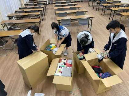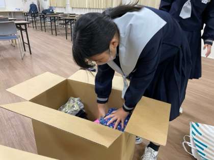 段ボール7つ分も集まりました!ボランティア部のメンバーで梱包して送付します。