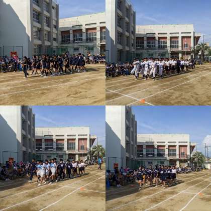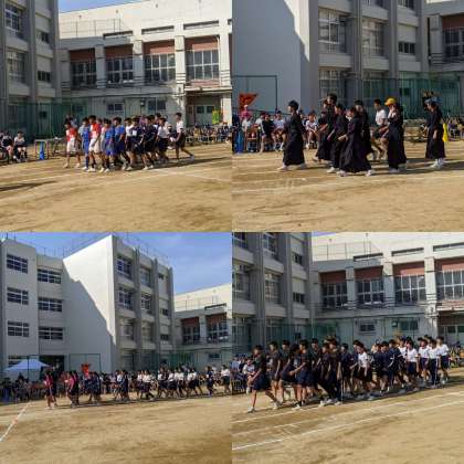 プログラム10番『部活動紹介』です。運動部の選手の行進です。ユニフォーム姿での行進です。それぞれのユニークな紹介文を放送部がアナウンスしてくれます。
