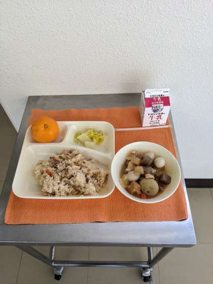 【本日の献立】 関東煮 はくさいの甘酢あえ みかん かやくご飯 牛乳