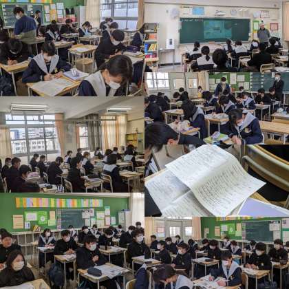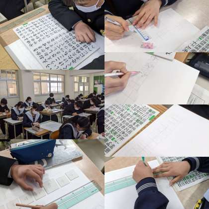【美術】ポスターを作成しています。1文字1文字配置を考えて丁寧に描いていきます。(2組)