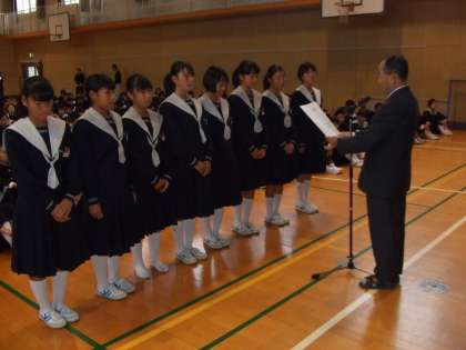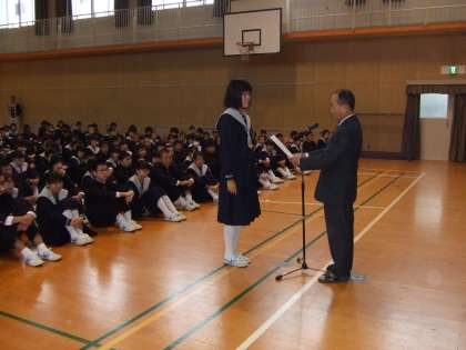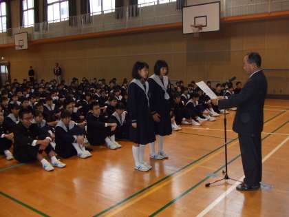 賞状の伝達 美術部、ハンドクラフト部、総合文化祭、ソフトテニス部