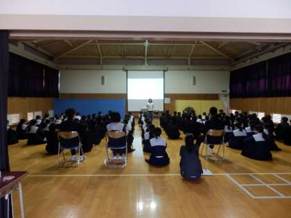 本日は、放送集会がありました。都島中学校の「あいさつと掃除」の伝統のお話がありました。