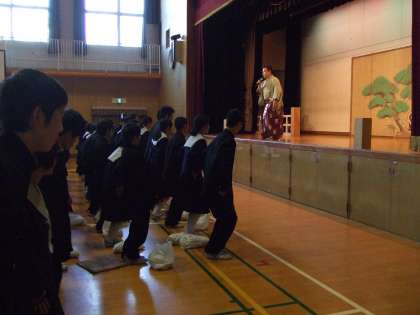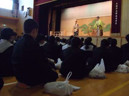 5・6限「日本の笑い」のタイトルで、鑑賞しました。狂言と落語です。狂言では2演目があり、昔の言葉使いですが、最初に解説をしていただいたおかげで、わかりやすくテレビがなくマイクもない時代の笑いに思いを馳せながら、鑑賞することができました。