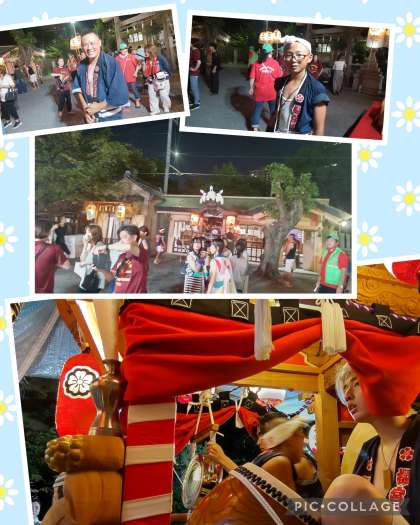 桜ノ宮神社のお祭りに行ってみると、素敵な親子に出会いましたよ。昼間は、炎天下で山車を引いて歩いたそうです。