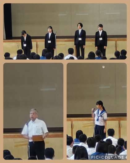 校長先生より、教育実習生の紹介がありました。9月24日まで、3週間の間、実習があります。